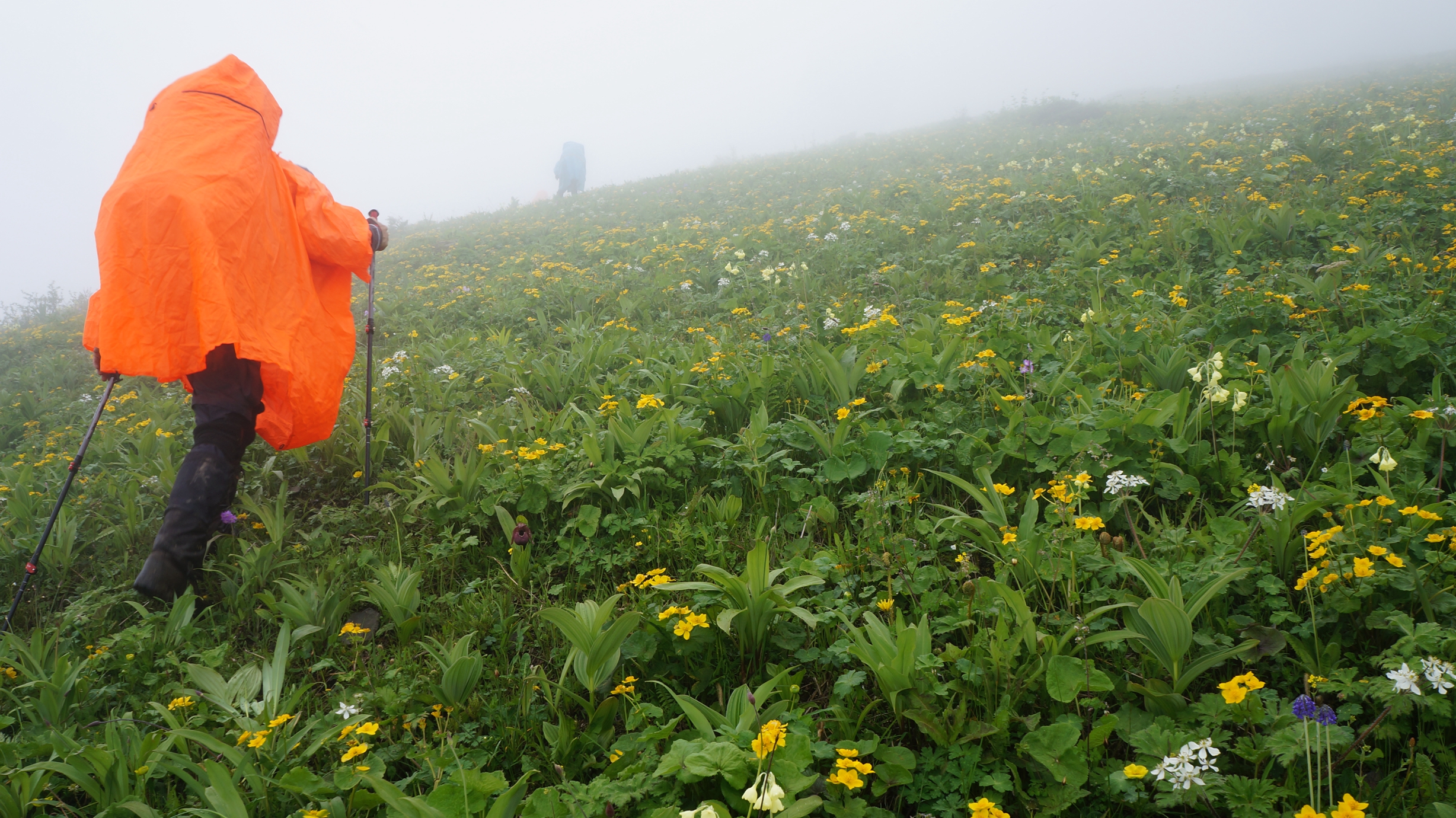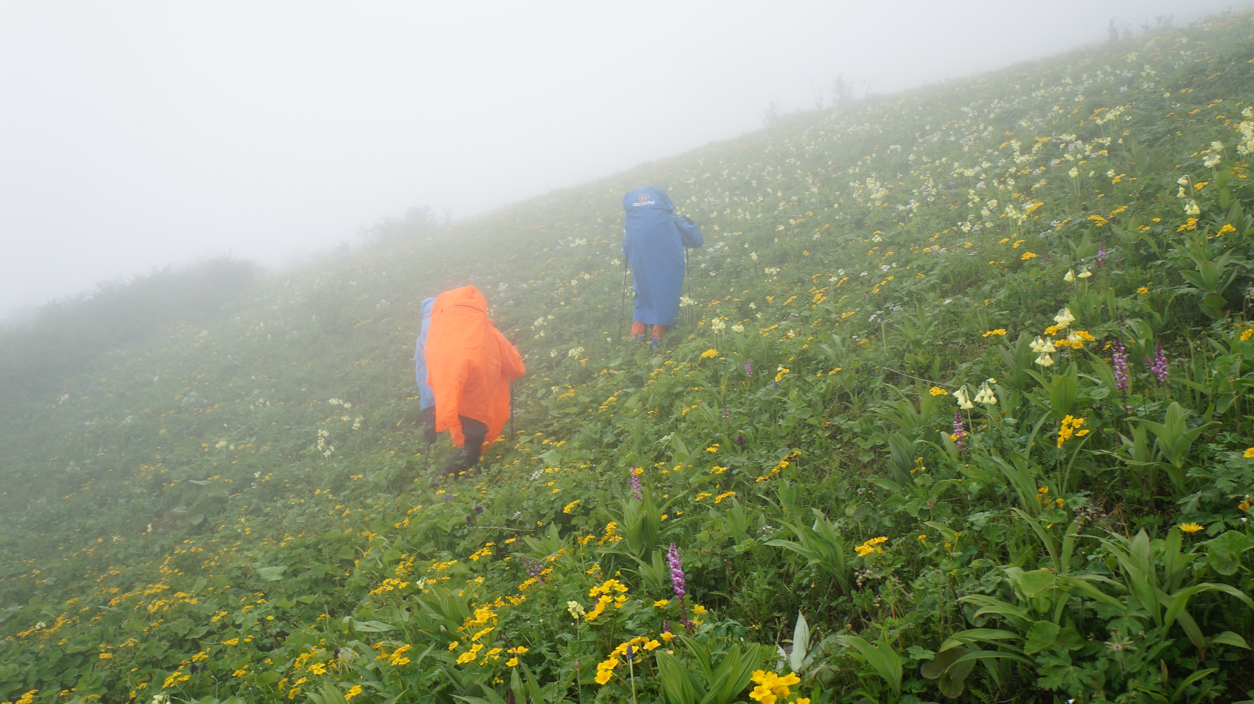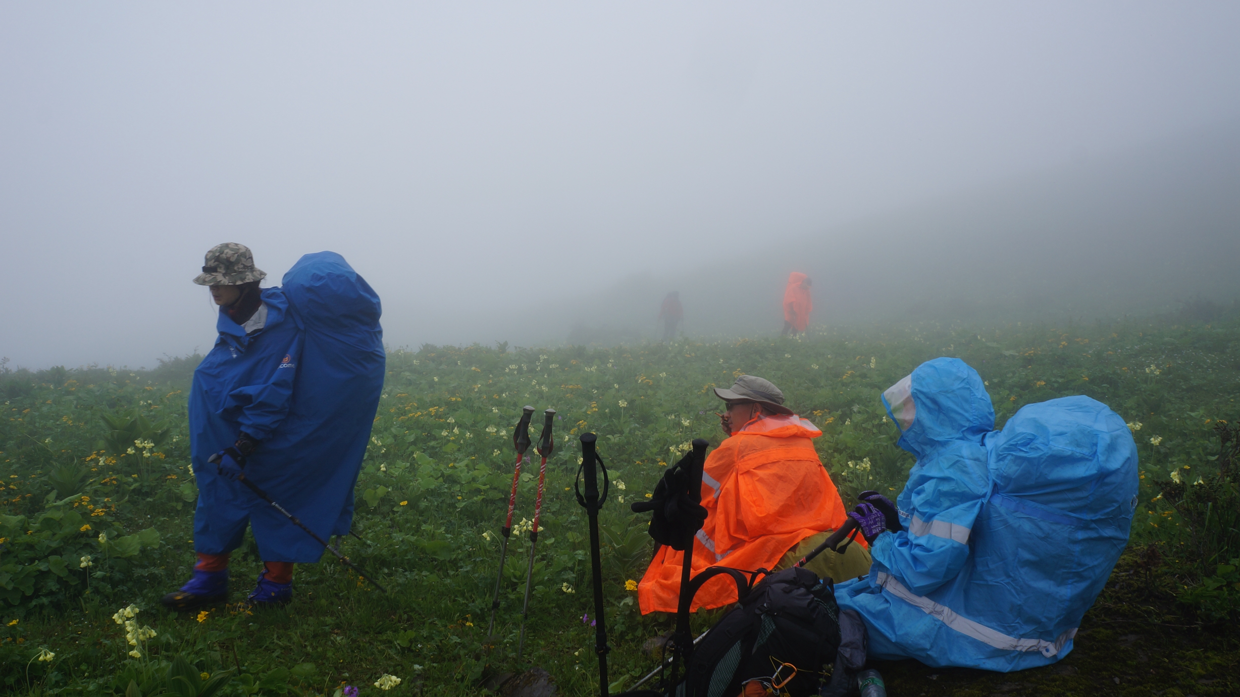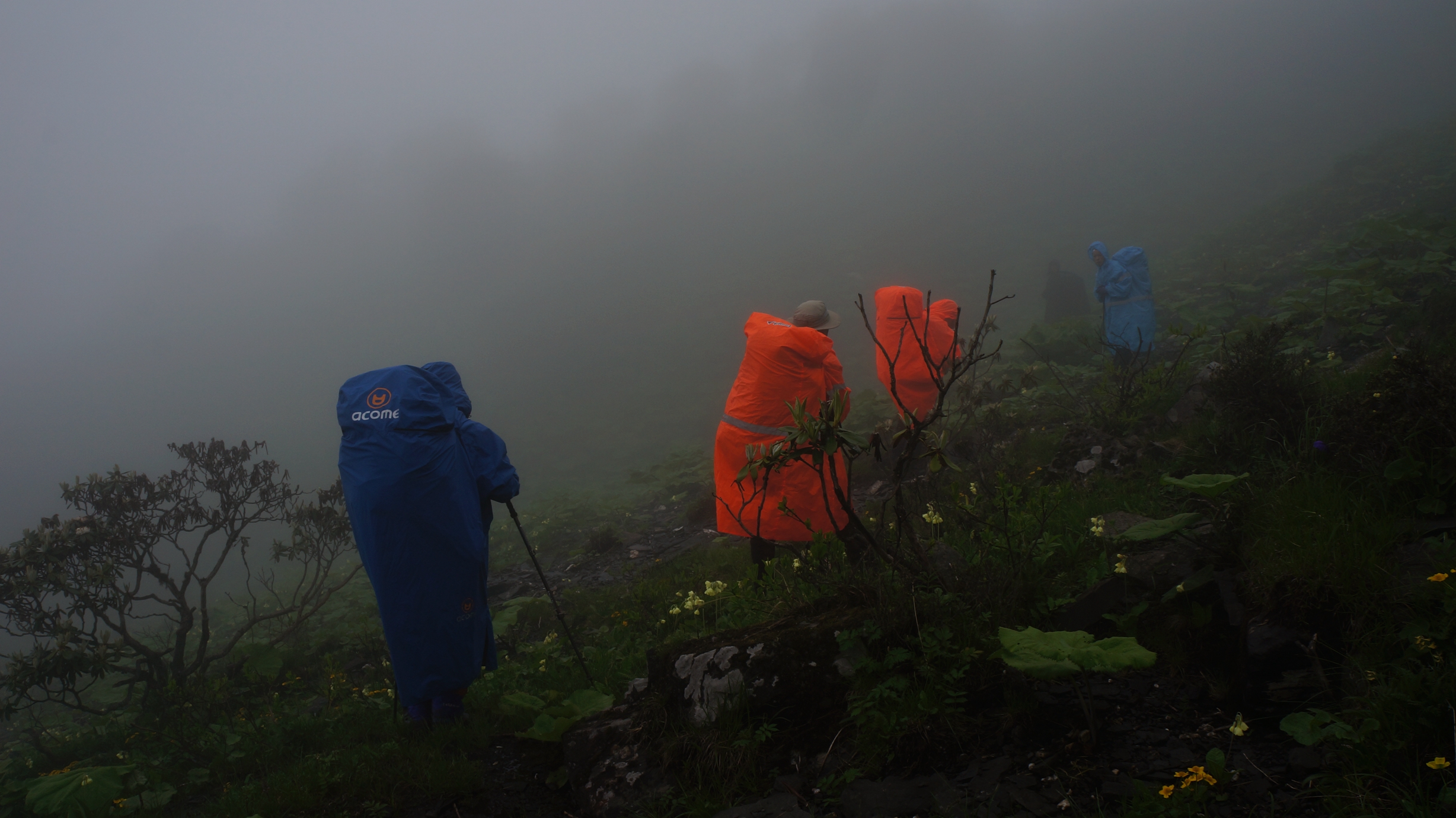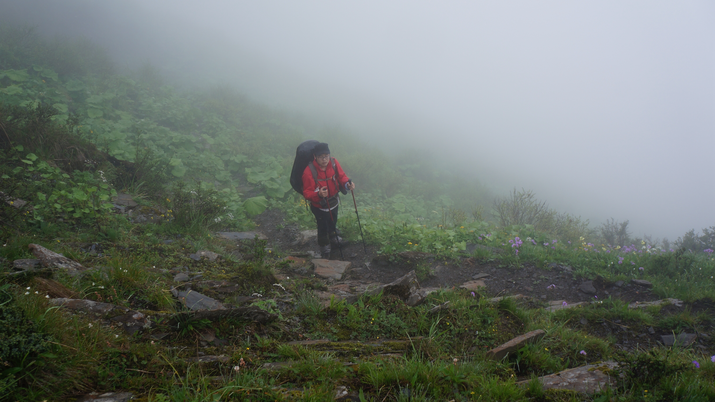 前面很大的雾,象形成雾雨,很湿,所以接下来这一路,大家很少掏相机或手机出来照。