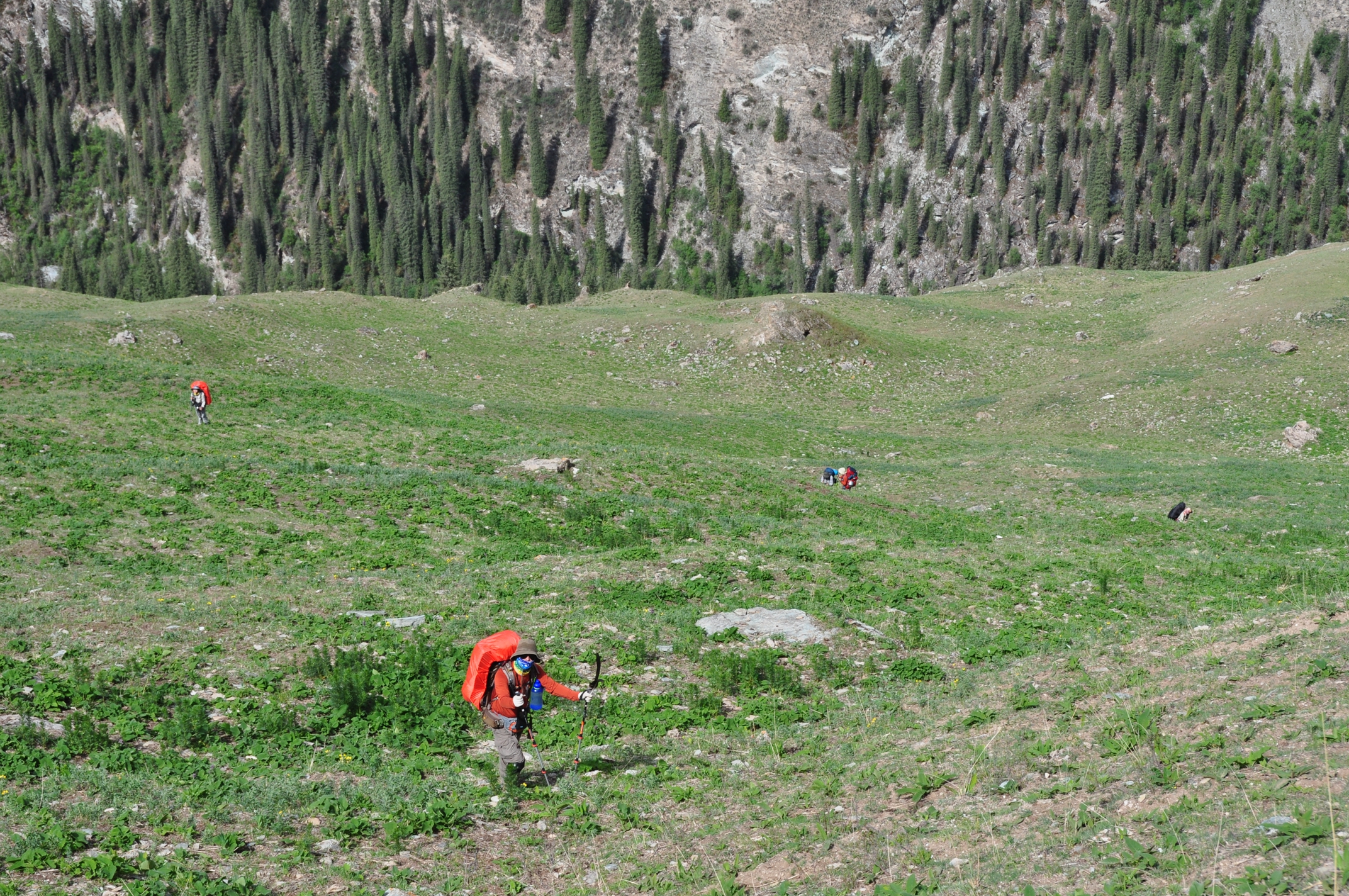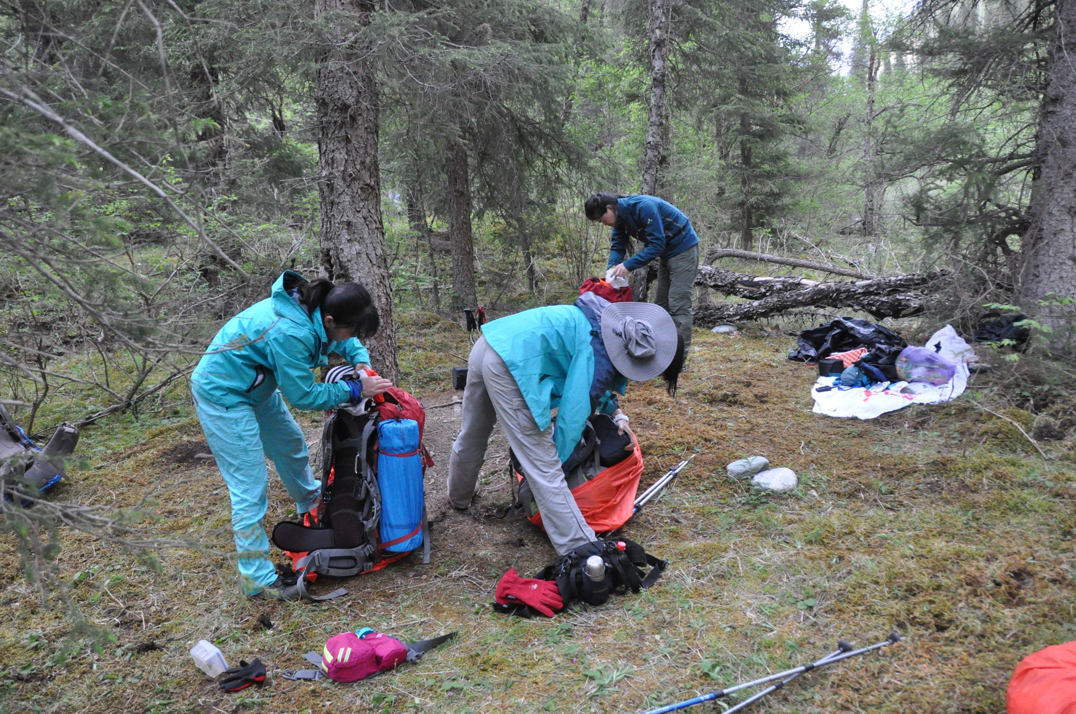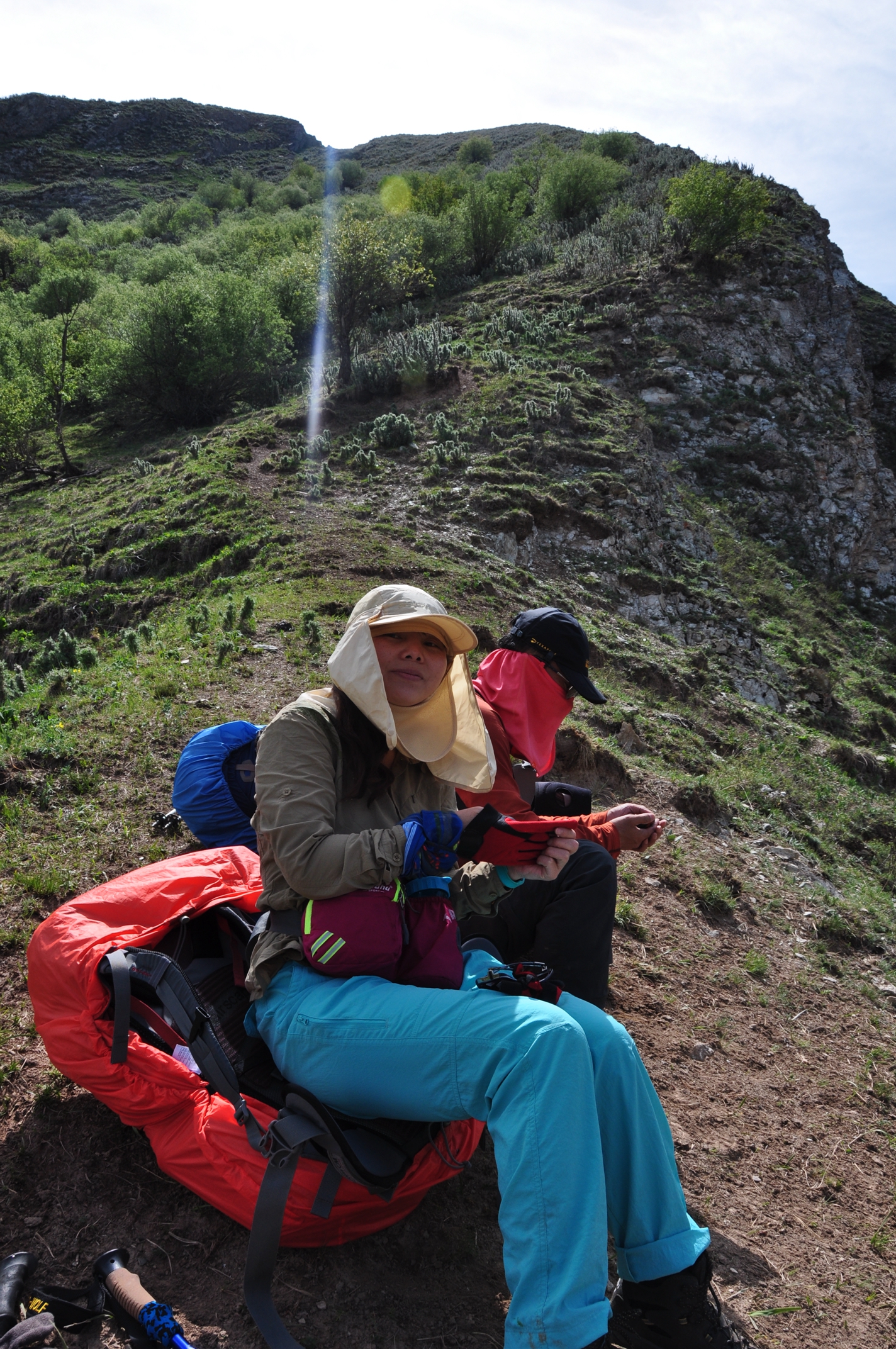 走过一个小坡后,海棠肚子不舒服,我和米团、蛤蟆、小刀走在后面,也顺便休息等了一下,然后小刀问海棠要不要帮忙背点,海棠决定不用,于是继续前行。