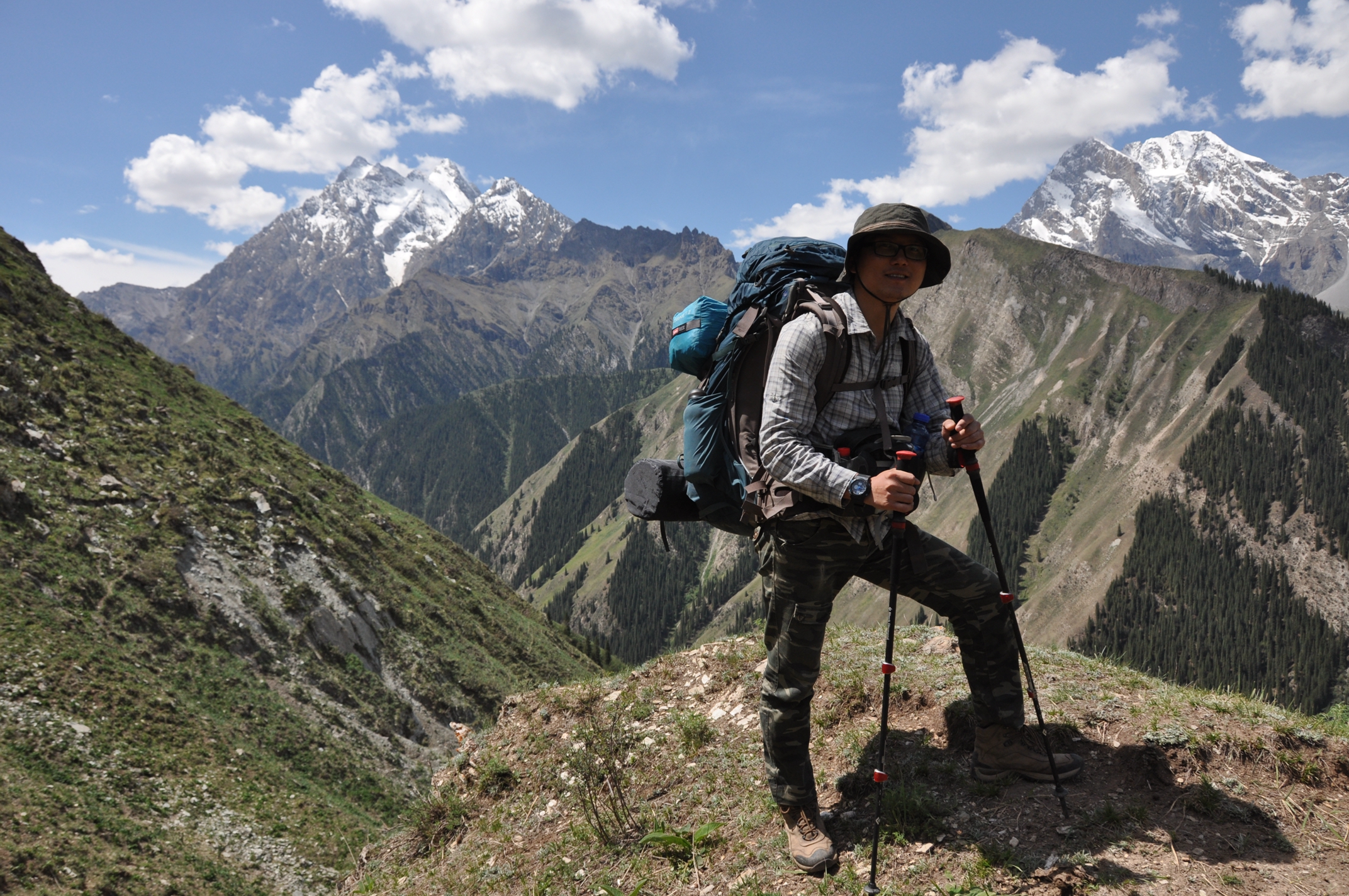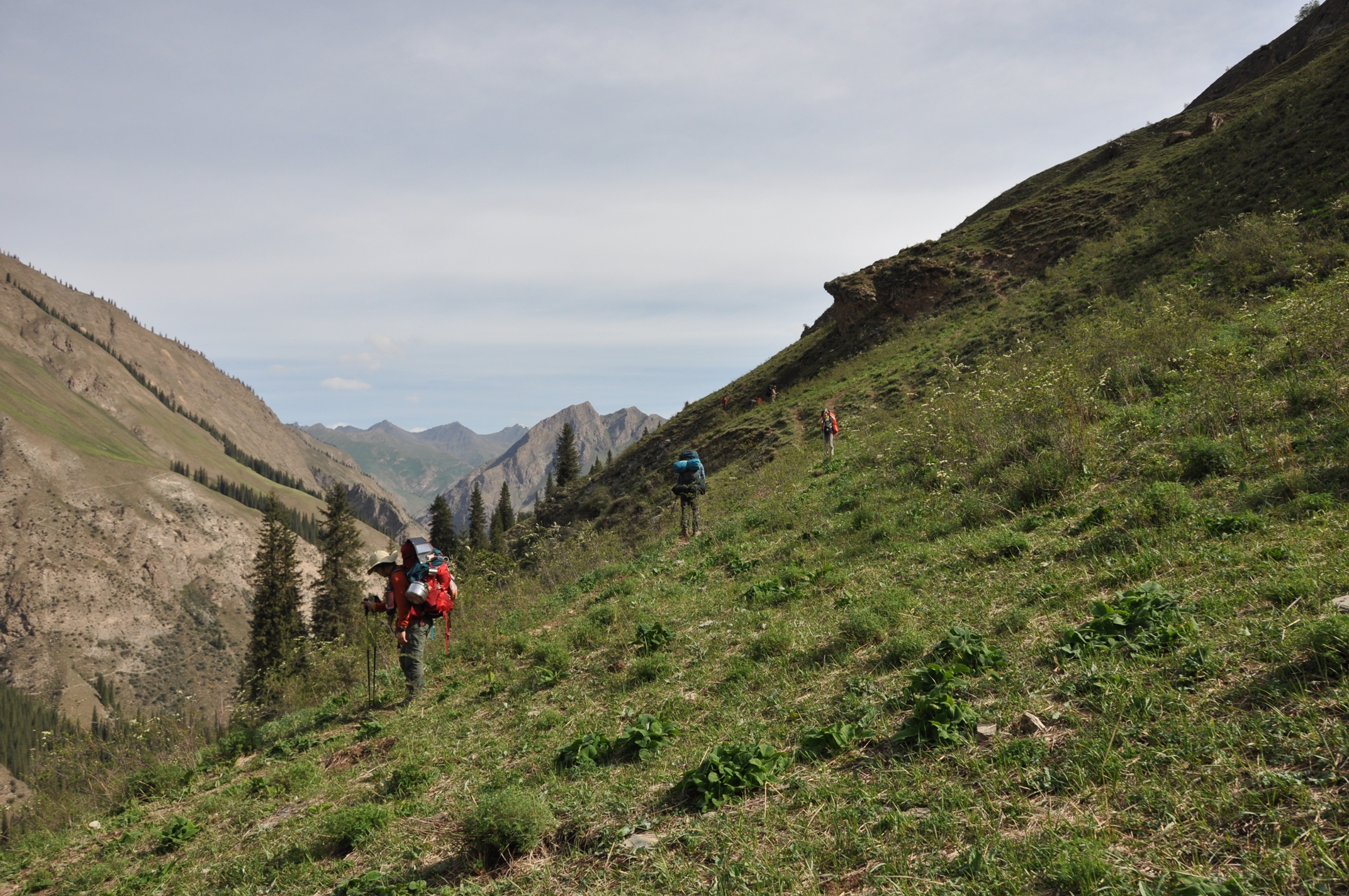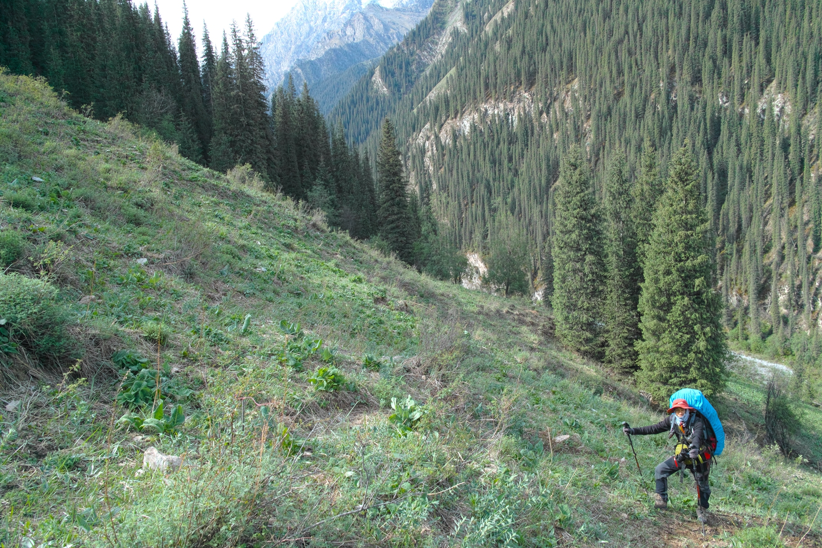 因前面锅有磨坏过背包挂点,所以心灵手巧的蛤蟆同学用尼龙绑带,搓了根尼龙绳,绑上高压锅,挂在我背包上。10点开始爬龙脊。