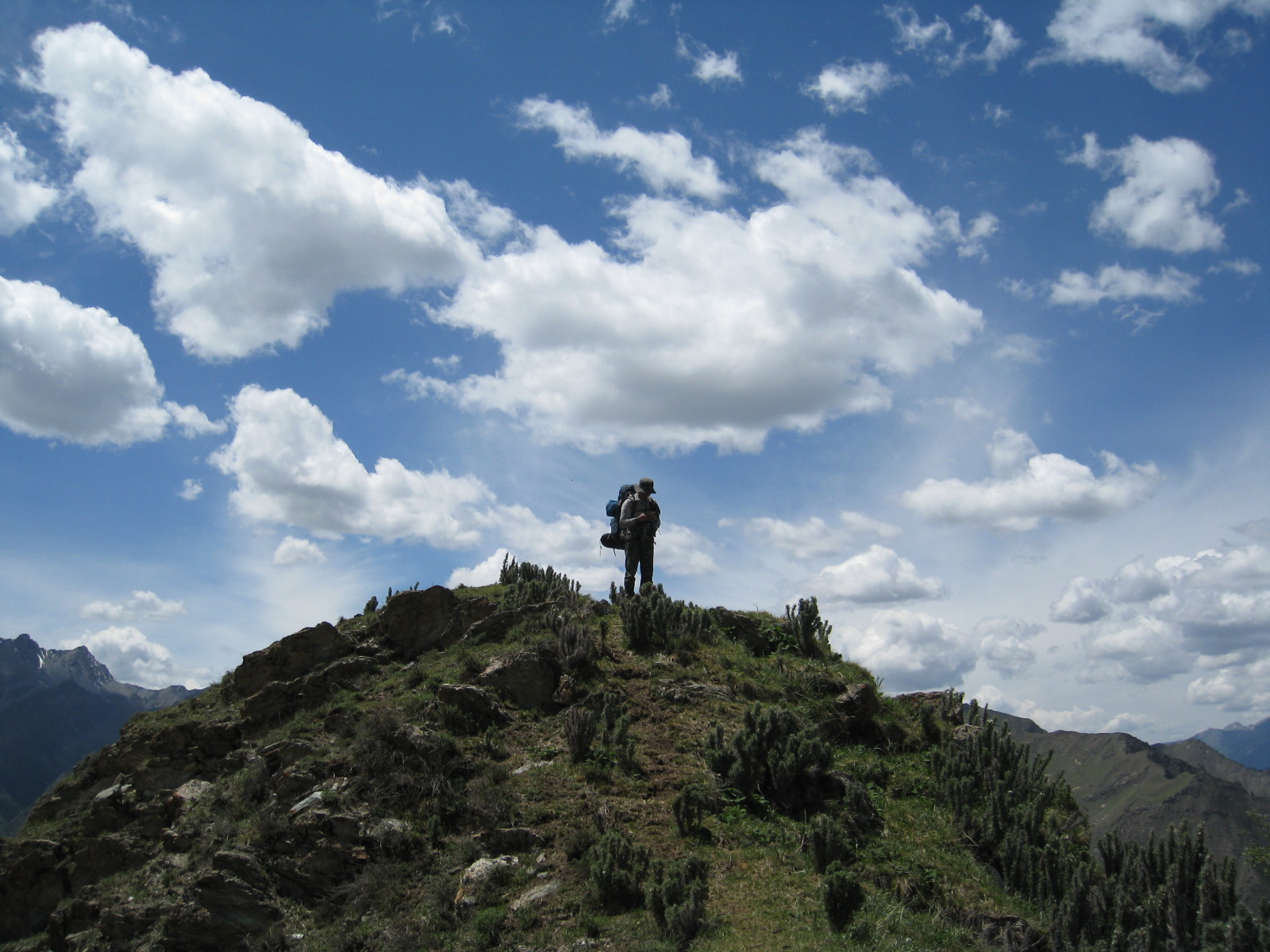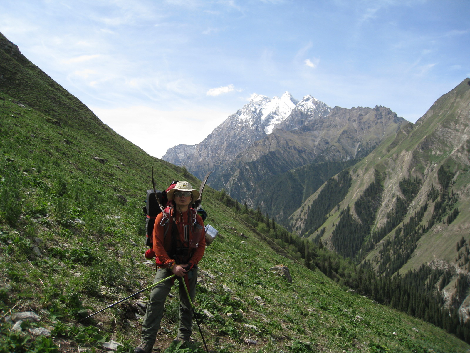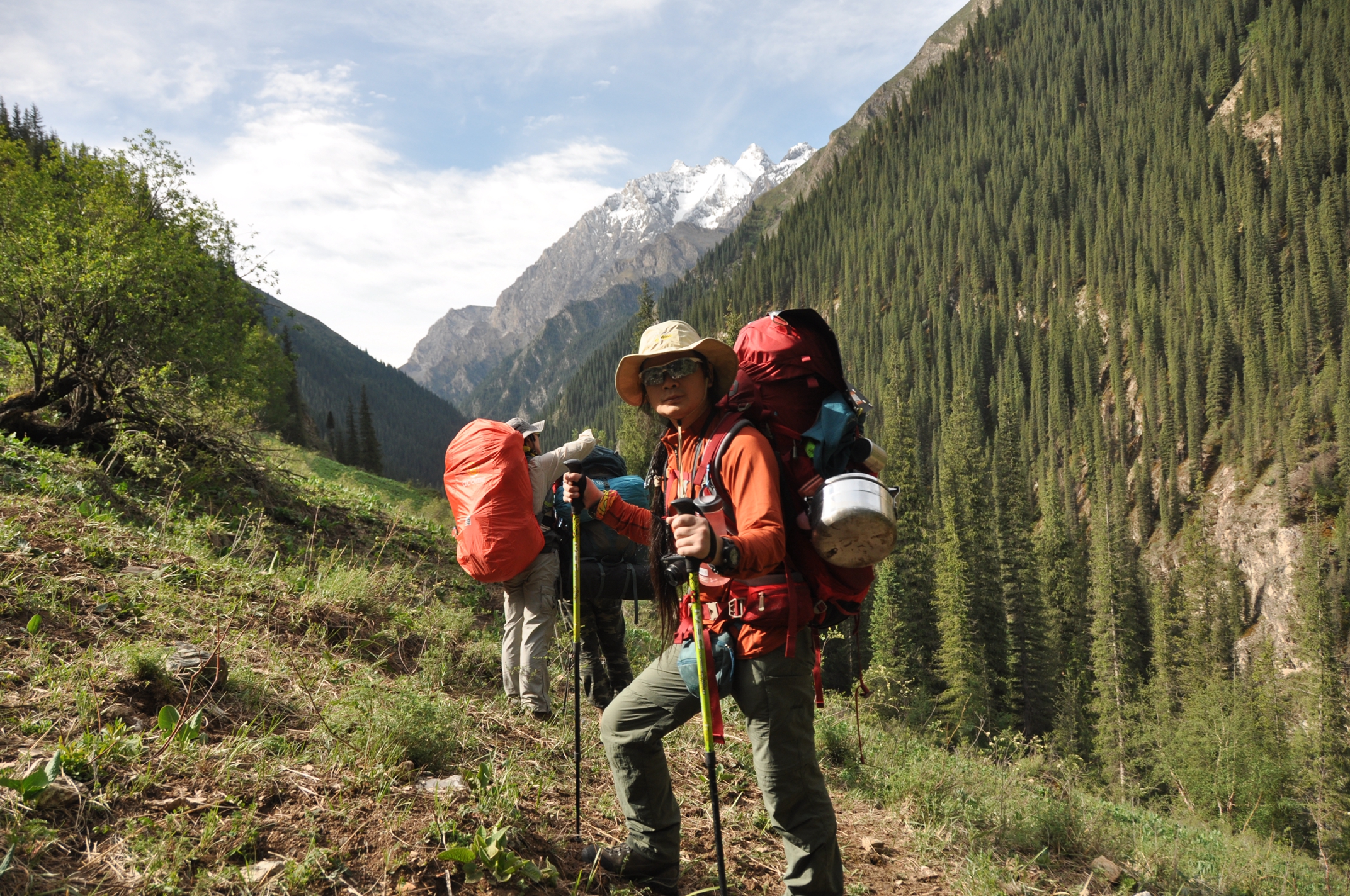 因前面锅有磨坏过背包挂点,所以心灵手巧的蛤蟆同学用尼龙绑带,搓了根尼龙绳,绑上高压锅,挂在我背包上。10点开始爬龙脊。