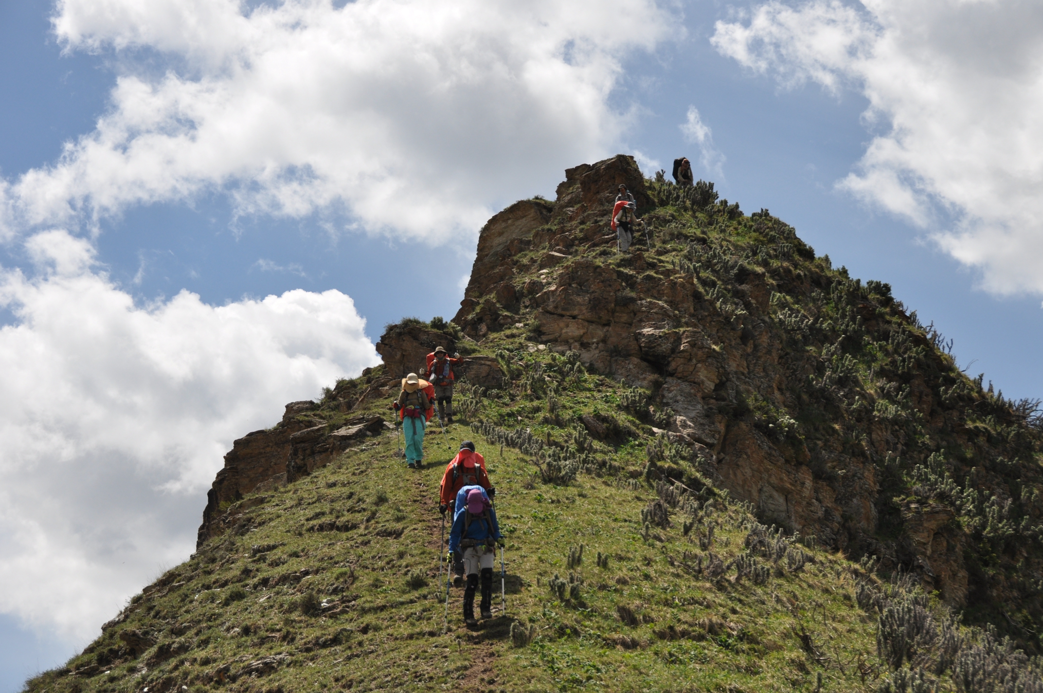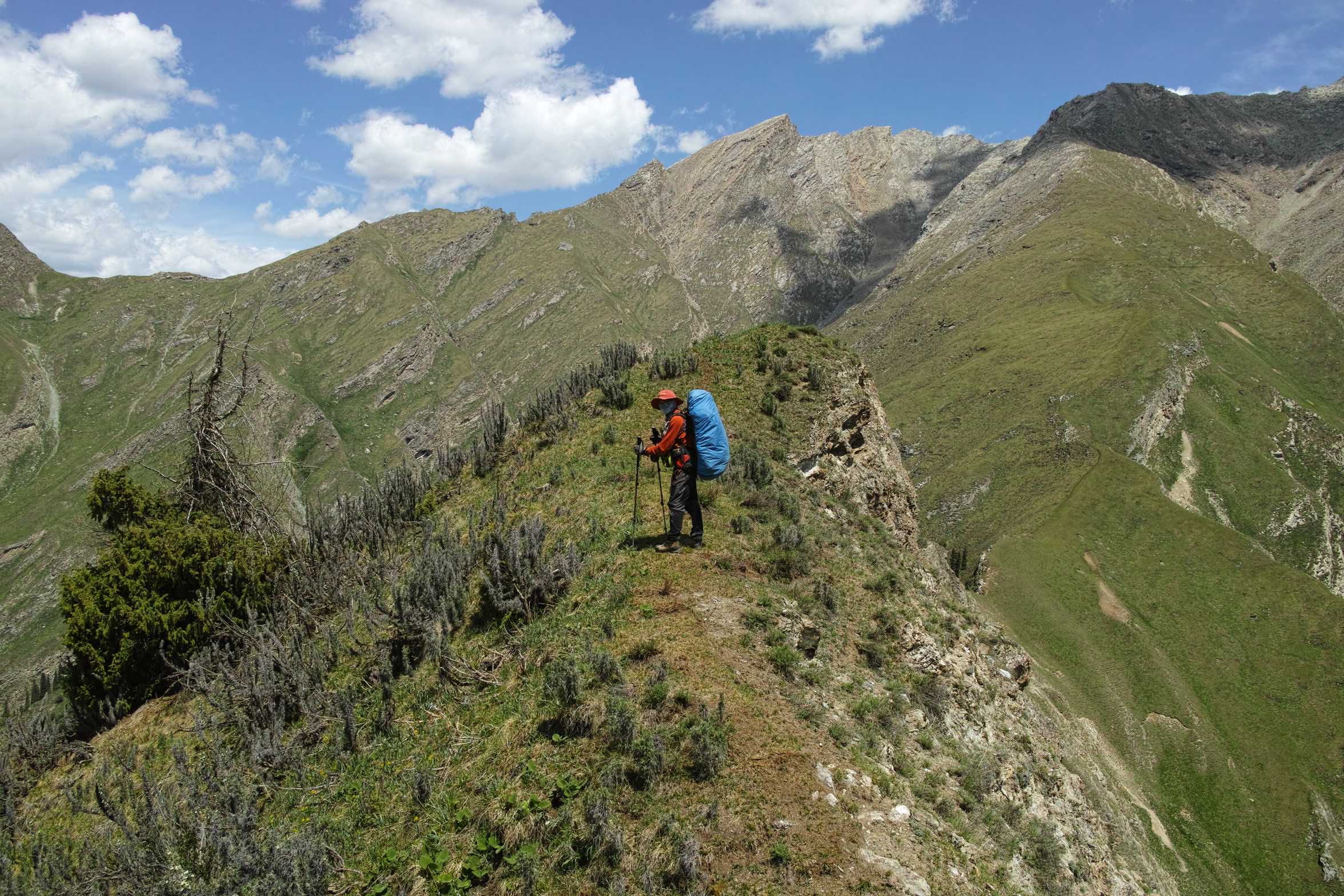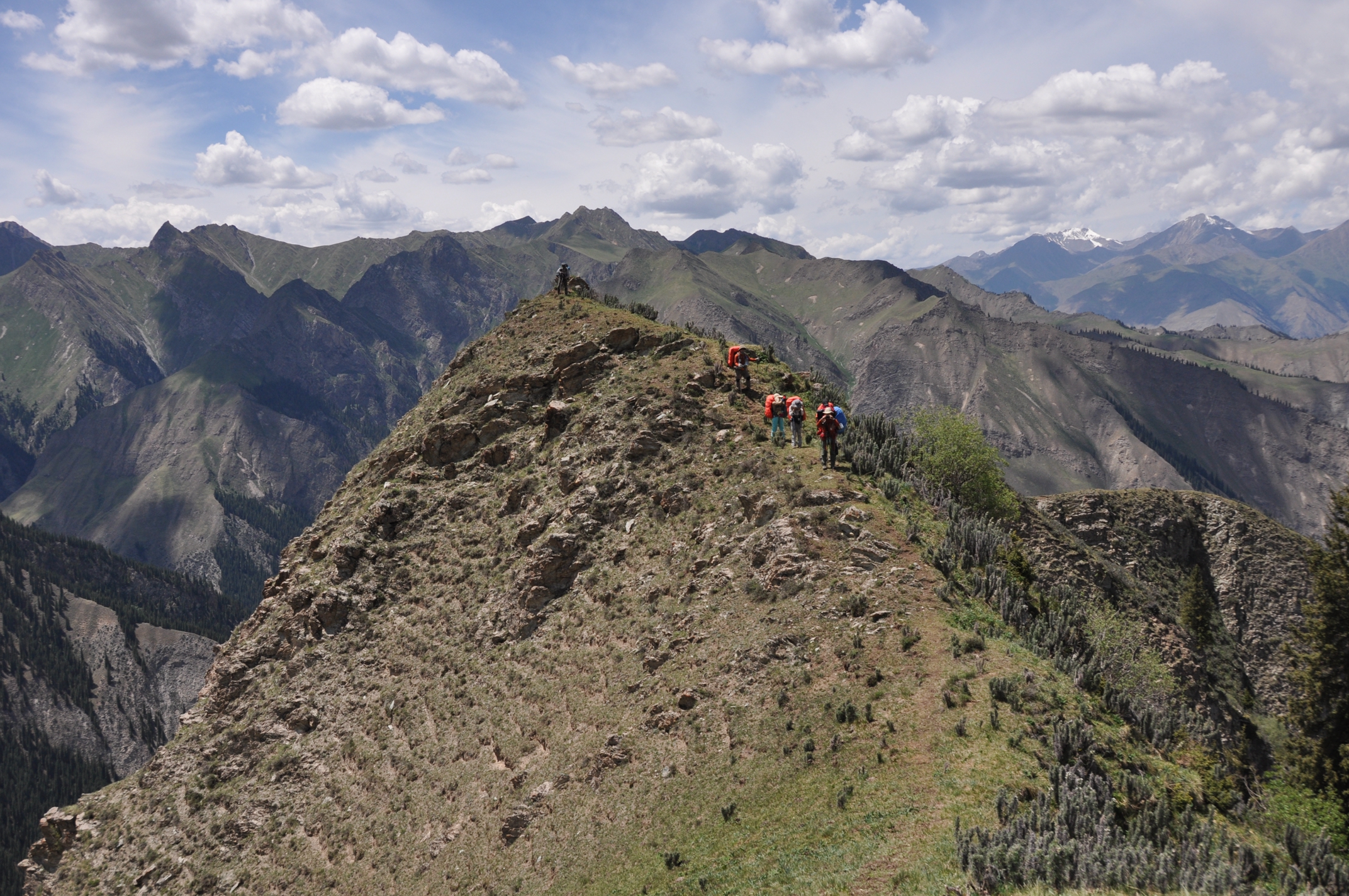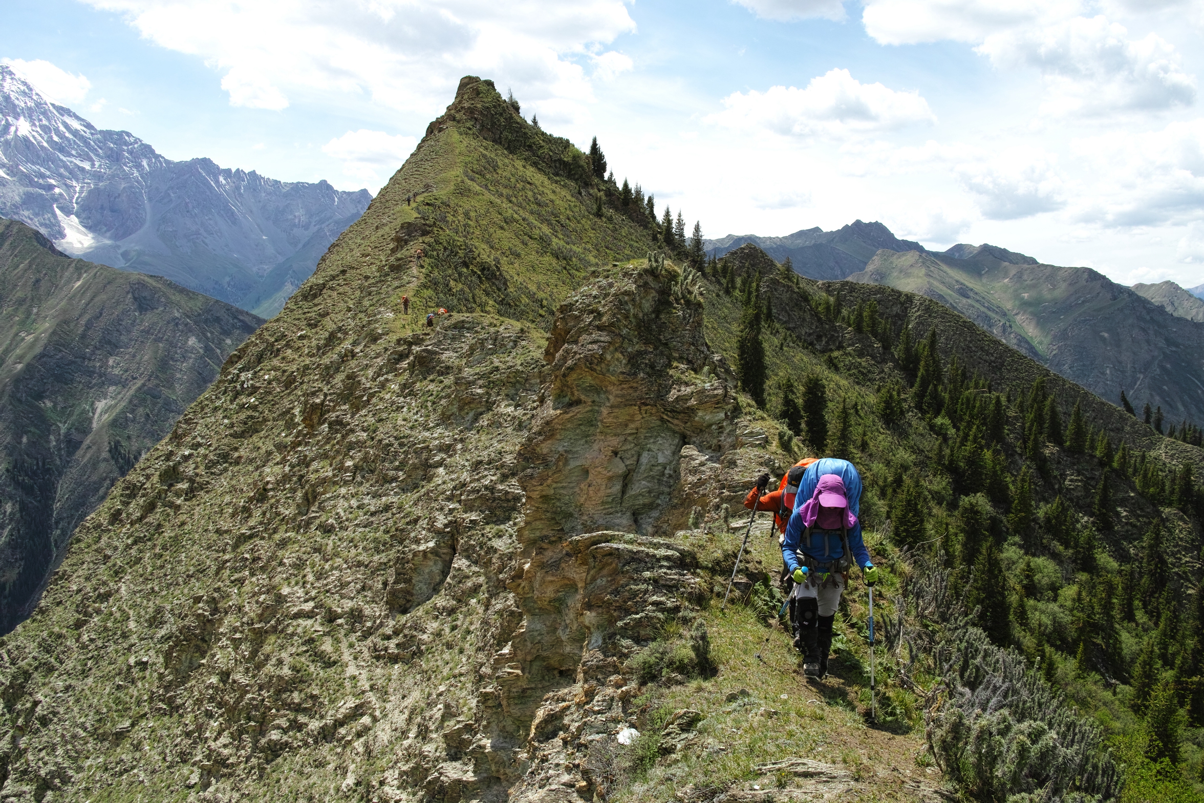 全员到达龙脊,左右是悬崖和陡坡,视野非常开阔,大家沿着中间山脊边走边欣赏美景。